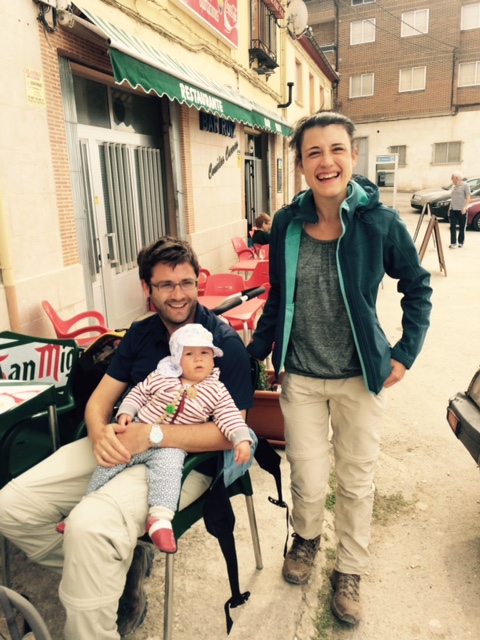 I’ll name a few names! Linda from Vancouver (the hay bale photographer). Remy from Holland and Claudia from Cuba/Spain/Miami. Jack from Holland. Julia from Sweden. (Julia bears a striking resemblance to a girl of Swedish descent with whom I attended 7th through 12th grades back home in San Francisco. Julia is charming, articulate, and is completing her studies in pharmacy in Gotheburg.) Katherine and Dana from an island in Puget Sound, who have already one on ahead. Paulette from Vancouver Island. Manuel from Bavaria. They have gone on ahead by now. The two French girls and French Canadian guy I have urged to “rock and roll” on their Camino. (Credit to A.J. for that one.) Two young German peregrinos – Flo and A.K. Michael from Newcastle. Jenny from New Zealand. Both have gone on ahead. And a remarkable trio. . . . With 9-month-old Valentina in the lead, Mom and Dad walking the Camino starting in Burgos. The family hails from a town near Stuttgart.