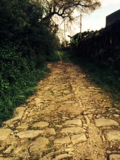 A lovely and serene estate with historic accommodations for peregrinos and others located in Cossourado, Portugal. (I highly recommend this rural casa.) There were three women peregrinos from Phoenix who over-nighted there, and five young German peregrinos – one guy and four women. And a very nice stray dog that had followed the Germans for much of the day. One of the German women decided to adopt the pooch. They were very devoted to each other. She spent considerable time on her cell phone determining the requirements to take him home to Germany with her after the Camino. Next morning, the women from Phoenix and I left before the Germans did. We walked together for several hours. One of the women announced that they had decided that the dog should be named “Santiago.” None of us knew what “Santiago’s” new mistress would actually call him. And we had concerns for him, too. He had a bit of a limp and appeared to have been separated from his original family. Walking all the way to “Santiago” might have been as difficult for him as it was for us. And it is not clear where he would overnight along the Way. Would the alberques along the Way take them both in? We did not see the cohort of Germans again, and never learned what happened to “Santiago.”