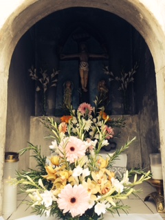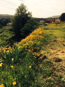(Not his real name.) Now in Spain, one morning I met a peregrino from Ireland named Richard. (Not his real name, either!) He was a bit older than I and on his 10th Camino. He said he walks two Caminos each year. We walked together for a time, and then I went on ahead. I passed through Redondela and spent the night at a pension four or five kilometers further along the Way. The vista from the pension was wonderful. I thought that I had found California poppies when I looked out the window. Close, but clearly a different species.