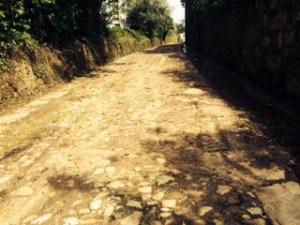 Both Richard from Ireland and another peregrino, Richard from England, spent the night at an alberque in Redondela. That alberque is reputed to be quite comfortable, albeit located close to a nightclub that is noisy into the wee hours of the morning. Though a long way from that alberque, I got a late start the next morning, forgot my hat and had to go back to the pension to retrieve it. In due course, I saw Richard from Ireland and others some distance ahead of me. I paused at a fonte for a snack and noted a passing peregrino – a burly fellow with a wooden staff for a walking stick, walking in sandals without socks (guaranteed to bring you many blisters), and sporting a swetty red shirt. I wished him buen Camino but he didn’t acknowledge me.